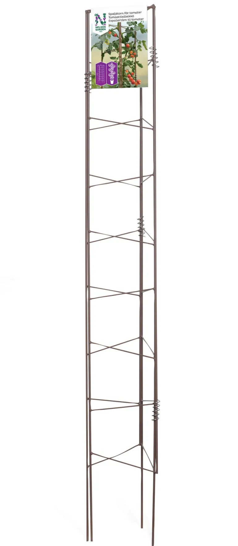 Fiksu tuki korkeille kasveille, erityisesti tomaatille ja kurkulle. Kolmiosainen säleikkö taitellaan kasvin ympärille tukevaksi torniksi. Kasvituki on jauhemaalattua terästä, punaruskea. Koko 140 x 71 cm (23 + 25 + 23 cm).
