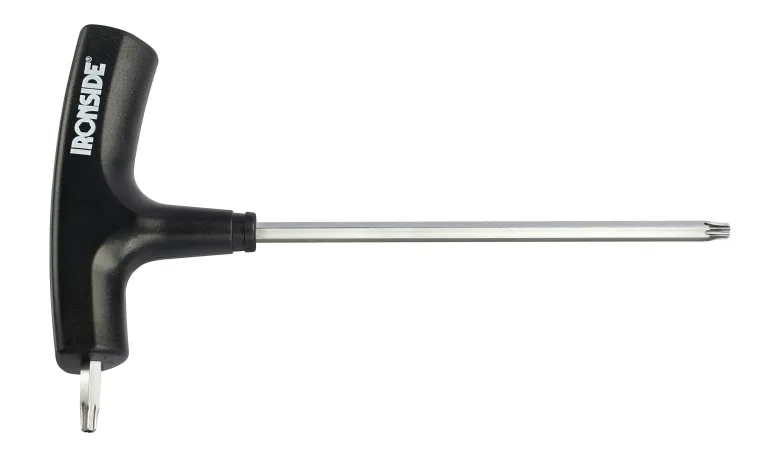 Kromattua erikoisterästä. Lyhyessä päässä on torx-pää keskioreikäruuveille. Sama ulottuvuus molemmissa päissä. Öljynkestävä ote.