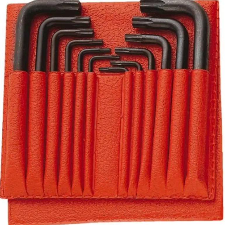 Torx-avainsarja sisältää kahdeksan avainta, jotka sijaitsevat kätevässä pidikkeessä. Avaimet ovat yhteensopivia standardoitujen torx- ja resistorx-määritysten kanssa.