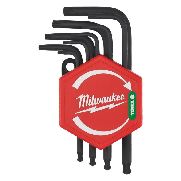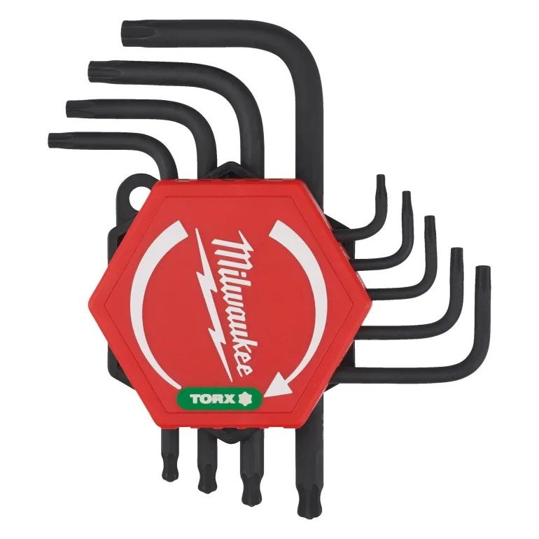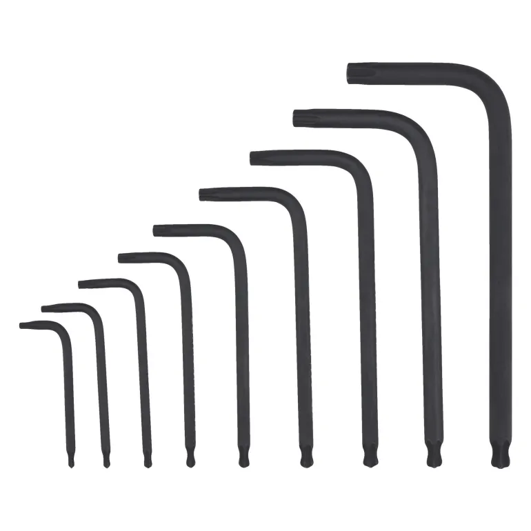Kompakti L-muotoinen TORX-avainsarja (9-osainen), jonka kompaktit avaimet soveltuvat ahtaissa tiloissa työskentelyyn.