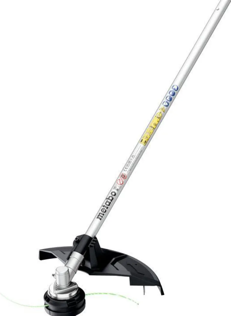 Trimmeri-/raivaussahalisäosa Metabon monitoimilaitteelle MA 36-18 LTX BL Q. Siimakoteloa käytettäessä tarkoitettu leikkuu- ja siistimistöihin ja vesakkoterää käytettäessä ruohonleikkuuseen ja takertuneen, kuivuneen ruohon poistamiseen ja varvikkojen ja piikkisten vesakkojen harventamiseen.