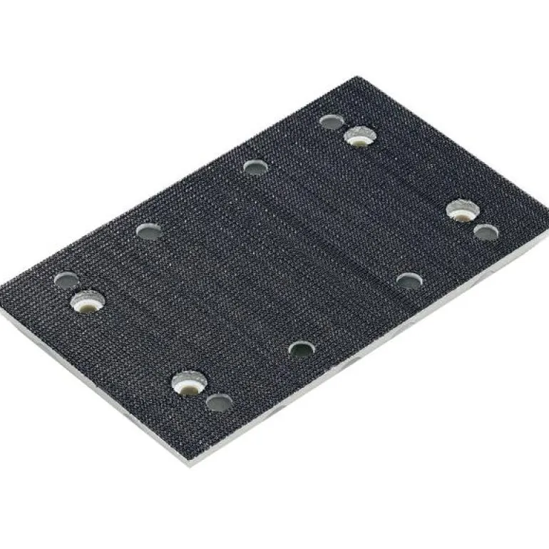 Kulutusta kestävästä materiaalista valmistettu tarrahioma-alusta, 8 pölynpoistoreikää. Reikien keskipisteiden välinen etäisyys on 54 mm.