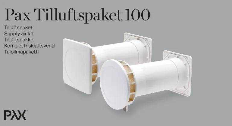 Pax tuloilmaventtiileillä saamme hallitusti oikean määrän raitista ilmaa sisätiloihin. Tuloilmaventtiilit sijoitetaan niihin tiloihin, joissa vietetään eniten aikaa, olo- ja makuuhuoneisiin. Voit valita joko Pax seinäventtiilit tai Pax rakoventtiilit, joiden muotoilu ohjaa korvausilman luonnollisesti ja miellyttävästi sisätiloihin. Tuloilmapaketti sisältää kaiken tarvittavan ulkoseinäasennukseen. Pakkaus sisältää seinäventtiilin pyöreällä sisäosalla (kansi Ø155 mm), Ø100 mm:n läpivientiputken ja valkoisen ulkosäleikön (140×140 mm). Venttiilin aukkoa säädetään vivusta. Paketin mukana tuleva hyönteissuodatin vaihdetaan helposti irrottamalla venttiilikansi, kanavan puhdistus onnistuu pikaliittimien ansiosta. Seinän maksimipaksuus on 370 mm. Läpivientiputket on helppo liittää tai leikata mittojen mukaiseksi.