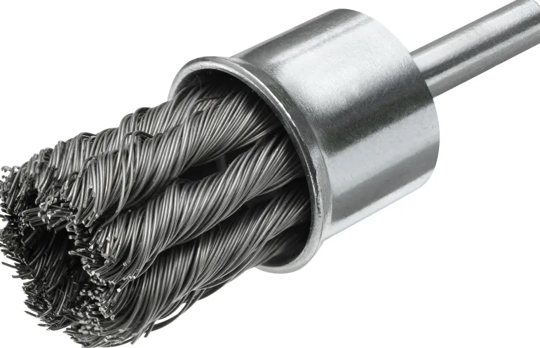 Kierretty teräsharja, joka soveltuu vaativiin puhdistustöihin. Yleiskäyttöinen ja hyvin soveltuva käsittelyyn vaikeapääsyisissä paikoissa. Tällä harjalla on korkea poistonopeus. 6 mm tappikiinnitys esim. käyttöön porakoneen kanssa. Kierretty teräslanka.