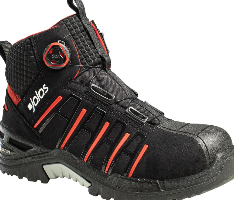JALAS® EXALTER 9985 on varrellinen turvajalkine, jossa on kaikki mitä tarvitset useimpiin työtilanteisiin: PTC-tekstiilinen naulaanastumissuoja, alumiininen varvassuoja ja Vibram-nitriilikumipohja. Malli tarjoaa ylimääräistä nilkkatukea ja PORON® XRD™-iskunvaimennus estää jalka- ja selkävammat. Verkkopäällysteiset tuuletusaukot päällisessä pitävät jalat viileinä ja estävät hiekan pääsyn jalkineisiin. BOA®-kiinnitysjärjestelmä helpottaa jalkineen pukemista ja riisumista.