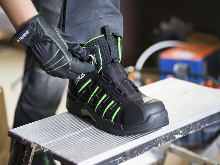 Varrellinen turvajalkine, jossa on kaikki mitä tarvitset useimpiin työtilanteisiin: PTC-tekstiilinen naulaanastumissuoja, alumiininen varvassuoja ja Vibram-nitriilikumipohja. Malli tarjoaa ylimääräistä nilkkatukea ja PORON® XRD™-iskunvaimennus estää jalka- ja selkävammat. Verkkopäällysteiset tuuletusaukot päällisessä pitävät jalat viileinä ja estävät hiekan pääsyn jalkineisiin. BOA®-kiinnitysjärjestelmä helpottaa jalkineen pukemista ja riisumista.