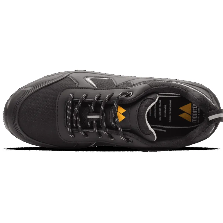 Monitor Madison on urheilullinen perusmallinen turvajalkine kilpailukykyiseen hintaan. Kengän ulkopohja on 2-tiheyksistä polyuretaania. Päällinen mikrokuitua, ja siinä on kuminen kärkivahvike. Turvakärki terästä ja naulasuoja APT-tekstiilimateriaalia.