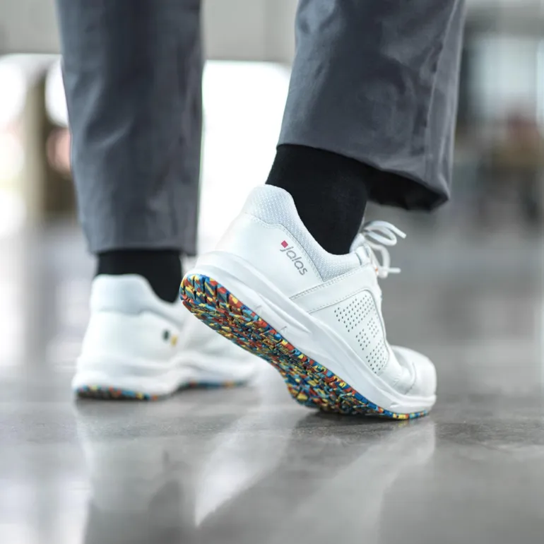 JALAS Tempus 5608 on turvallinen ja urheilullinen työ- ja vapaa-ajan jalkine. Hyvin kevyt ja mukava, monivärinen ulkopohja, edistyksellinen PORON XRD -iskunvaimennus, varvassuoja sekä pehmeä ja joustava tekstiilinen naulaanastumisssuoja. Toimivassa ulkopohjassa on hyvin tehokas pitoa parantava kuviointi, ja se on valmistettu erityisestä kestävästä nitriilikumista. JALAS® Tempus -jalkineet ovat ESD-hyväksytyt ja antistaattiset jalkineet ESD-suojattuihin työympäristöihin.