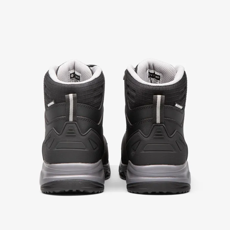 Toe Guard Wild WR Mid on turvajalkine PU-pinnoitetusta parkitusta nahasta, joka tilavalla istuvuudellaan tarjoaa optimaalisen mukavuuden. PU-vahvistus varvasosassa lisää kestävyyttä. Käyttömukavuutta edistää yksinkertainen muotoilu ilman ylimääräisiä yksityiskohtia ja saumoja sekä tekstiilinen varsi. Vedenpitävä kalvo estää veden läpäisyn kenkään. Kengässä myös öljyä ja lämpöä kestävä kuminen ulkopohja, joka on kevyt hyvällä pidolla. ESD-testattu standardin BS EN IEC 61340-4-3: 2018 mukaan. Päällinen: Nahka ja ripstop-materiaali. Vuori: Verkko. Kalvo: Vedenpitävä. Ulkopohja: Lämpöä kestävä kumi, jossa hyvä pito. Välipohja: EVA. Pohjallinen: Kosteutta siirtävä PU-vaahtomuovi hyvällä hengittävyydellä.
