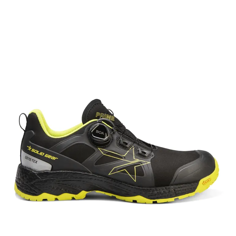 Solid Gear Prime GTX Low -turvakenkien välipohja koostuu kokonaan kevyestä ETPU-materiaalista. Käyttäjä, joka arvostaa huippumukavuutta ja vakautta, voi nyt myös nauttia huipputehokkaasta pitkään kestävästä EPTU:n antamasta vaimennuksesta. Kengässä on erittäin kestävä ja hyvin pitävä kuminen Vibram-ulkopohja. Pohjan kiertojäykkyys parantaa ergonomiaa. Kengän päällinen on kestävää mikrokuitua, jossa on vedenpitävä ja hengittävä GORE-TEX-kalvo. Täysin uudessa GORE-TEX Stretch -teknologialla varustetussa kielessä on ergonominen tarkennus, joka yhdessä korkean kantavahvikkeen ja BOA Fit -järjestelmän kanssa antaa Solid Gear Prime GTX:lle ainutlaatuisen istuvuuden.