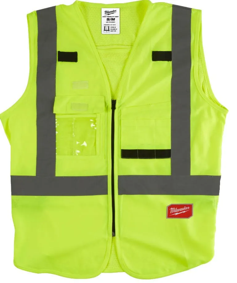 Huomioliivi 10 taskulla lisää kantomahdollisuuksia. Läpinäkyvä henkilökorttitasku, mikä helpottaa tunnistautumista työpaikalla.