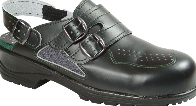 Jalas 1796 -pistokkaat säädettävällä kantahihnalla, PU-pinnoitettua nahkaa. Teräskärki ja PU-ulkopohja. Sopii esimerkiksi keittiötöihin.