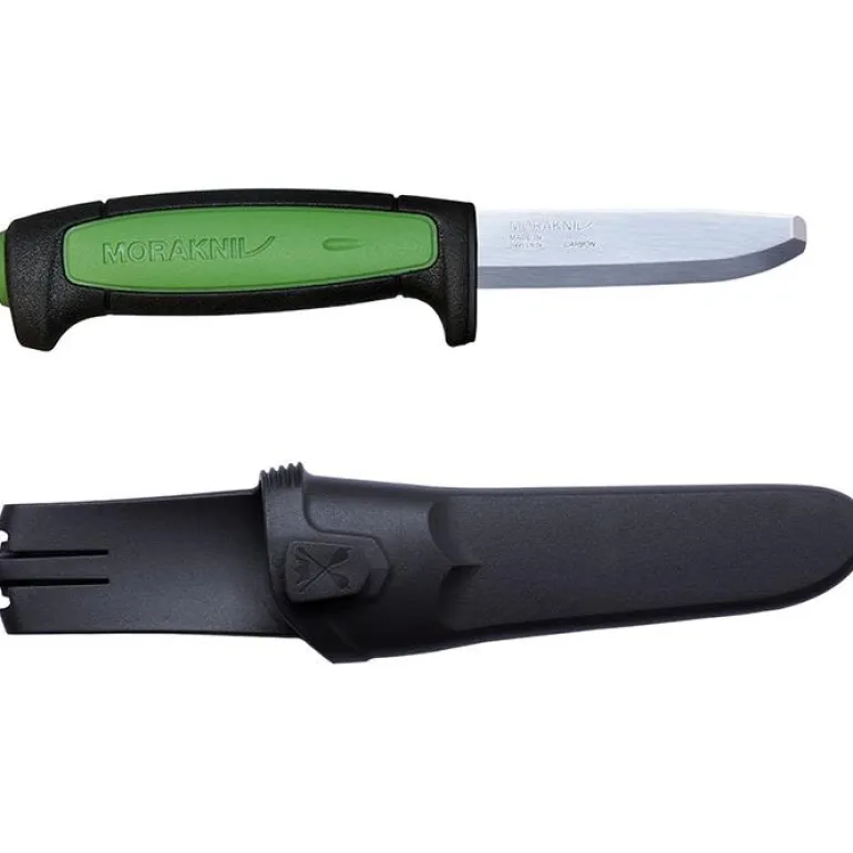 Morakniv Safe Pro on tukeva hiiliteräksinen turvapuukko, jonka terän pituus on 82 mm ja jonka pyöristetty turvakärki ehkäisee pistohaavoja. Turvapuukossa on TPE-kumikahva ja sormisuoja, jotka lisäävät turvallisuutta puukkoa käytettäessä.