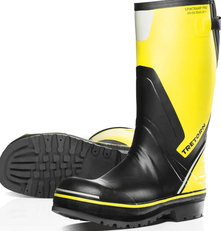 Uudet mukavat ja kestävät kumisaappaat. Erityisesti suunniteltu vedettäväksi jalkaan/pois, säädettävä varsi, nopeasti kuivuva vuori, piikkisuojattu pohja ja heijastinhihna parantavat näkyvyyttä pimeässä. Nitriilikumista valmistettu öljynkestävä pohja, joka sopii nastoille.