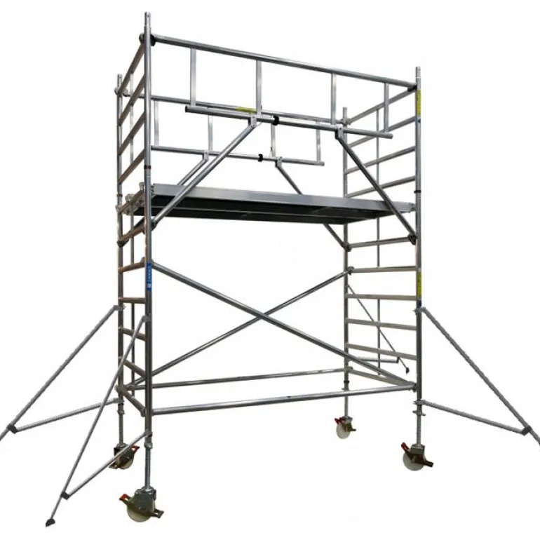 - Turvallinen ja nopea pystyttää ja purkaa ja irrotettavien kaiteiden ja 2 m:n etäisyydellä olevien tasojen ansiosta.