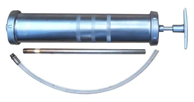Imuruisku nikkelipinnoitettua metallia. Öljyille (enintään SAE150), jäähdytysnesteille, jarruöljyille, dieselille, leikkausnesteille ja vedelle (enintään 80 ºC). Mukana putki ja PVC-letku.