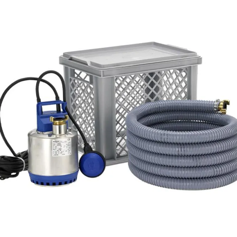 Täydellinen tyhjennyssarja, joka koostuu SXM 2 -tyhjennyspumpusta 10 metrin kaapelilla ja 1 1/4″ ulostulosta pikaliittimellä sekä 6 m letkusta pikaliittimellä. Nämä on pakattu suojaavaan kuljetuslaatikkoon. Pumppu on tarkoitettu pilssipumppaamiseen, tyhjennykseen ja kasteluun, ja se on varustettu 250 W:n moottorilla, jonka kierrosnopeus on 3000 rpm.