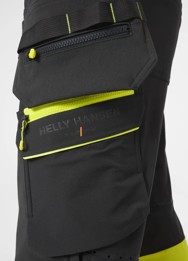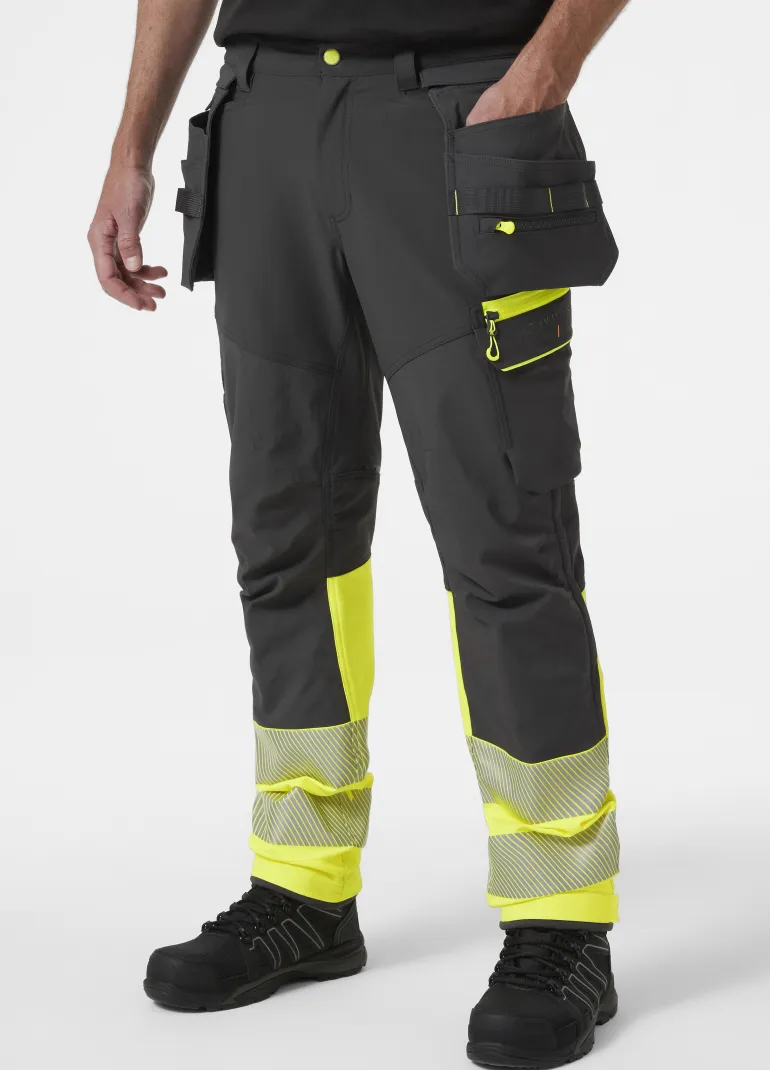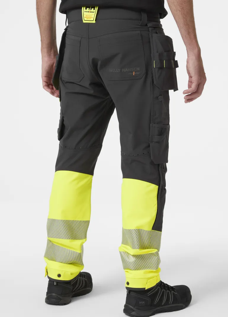 ICU BRZ -huomiorakennustyöhousut (luokka 1) neljään suuntaan joustavaa kangasta useilla käytännöllisillä ominaisuuksilla, kuten Cordura®-riipputaskuilla, joustavilla Cordura®-polvivahvikkeilla, polvisuojataskuilla ja ilmanvaihtoaukoilla takana. Mahdollisuus pidentää lahjepituutta 5 cm. Vetoketjulliset Cordura®-riipputaskut, joissa kaksinkertainen pohja ja kestävät nailontyökalulenkit. Painonapeilla säädettävät lahkeensuut. OEKO-TEX-hyväksytty materiaali. EN ISO 20471:2013: 1.