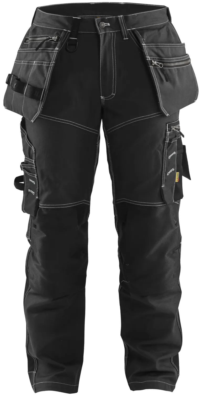 Työhousut 100-prosenttista puuvillaa ovat kestävät, mukavat ja täynnä käytännöllisiä yksityiskohtia, jotka ovat avuksi jokapäiväisessä työssä. Housuissa on kapeampi istuvuus, ja vahvasta materiaalistaan huolimatta ne ovat ilmavat ja mukavat käyttää. Keveyden ja mukavuuden lisäämiseksi housujen takaosassa, kaarrokkeessa, pohkeissa ja taskujen suulla on kaitaleet 4-suuntaisesta joustomateriaalista. Lisäksi polvitaskuissa on joustavat CORDURA®-vahvikkeet, jotka tuovat jo ennestään erinomaiseen kokonaisuuteen lisää mukavuutta. Materiaali: 100 % puuvillaa, twill, 370g/m². Pesuohje: 40°C.