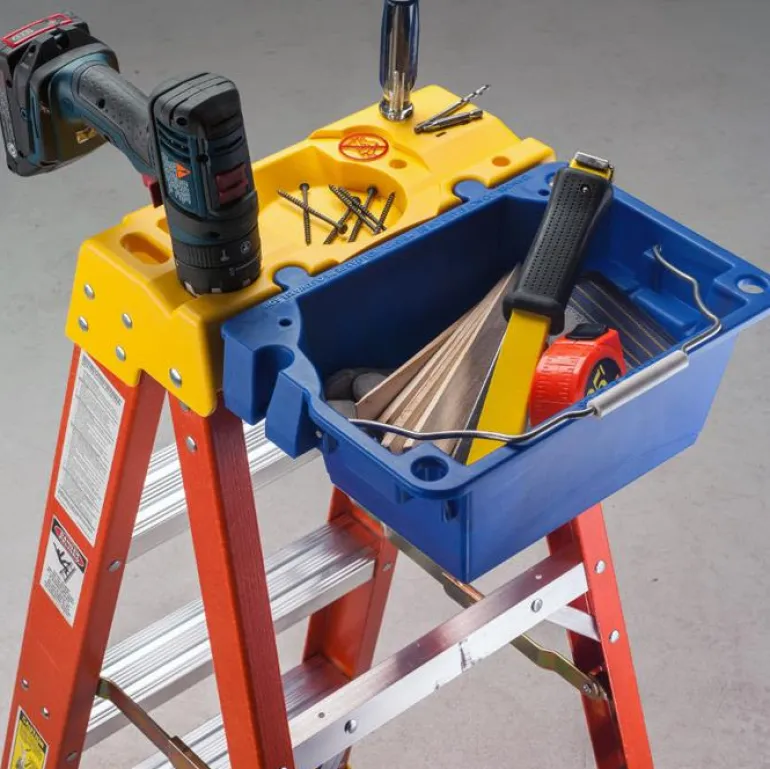 Monikäyttöinen työkaluhylly. Varustettu kahvoilla helppoa kantamista varten. Sopii Werner 716 -lasikuitutikkaisiin.