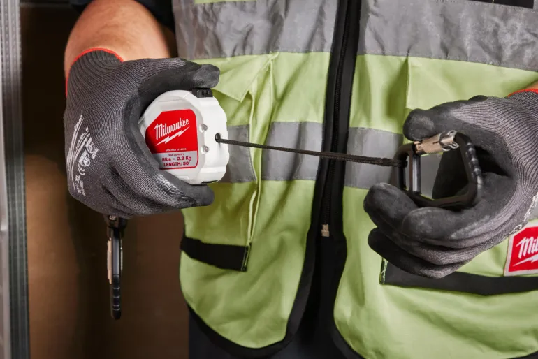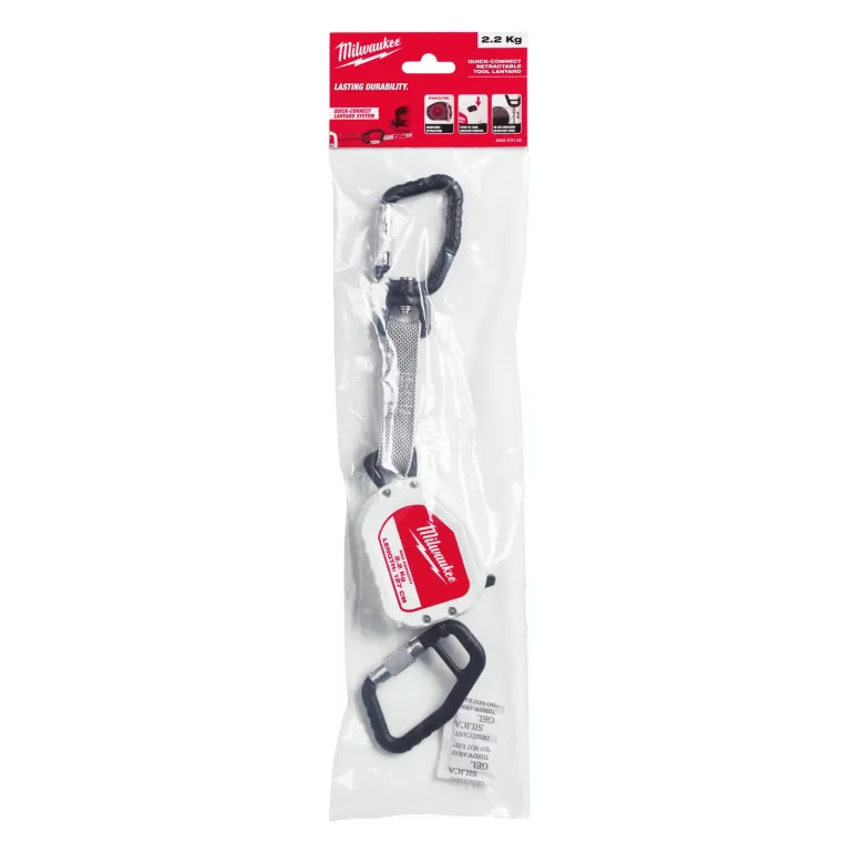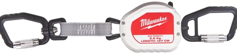 Milwaukee 4932472106 on venyvä 2,2 kg:n työkalukiinnitin pikakiinnityksellä. Työkalukiinnitin palautuu itsestään takaisin venytettäessä, pituus on 127 cm hihnan ollessa ulosvedettynä. Double Locking-karabiinihakat varmistavat turvallisen kiinnityksen, mikä ei löysty tai irtoa vanhingossa. Integroitu Swivel™ estää kiertymisen ja solmiutumisen, mikä lisää liikuteltavuutta. Värikoodatun painoluokituksen avulla on työkalukiinnittimen painokapasiteetti helppo tunnistaa.