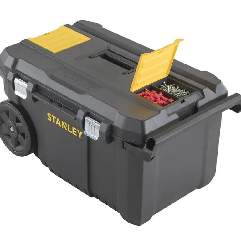 Iso työkalulaatikko, tilavuus 50 l. Kestävä teleskooppikahva, jonka avulla työkalulaatikon liikuttaminen on helppoa. Irrotettava lokero pienten osien ja tarvikkeiden säilyttämiseen. Geometriset metallikiinnikkeet. Lukitussilmukka parantaa turvallisuutta. 7″:n pyörät helpottavat siirtämistä. Integroitu V-ura helpottaa puun ja putkien sahaamista. Irrotettava tarjotin helpottaa työkalujen ja tarvikkeiden pitämistä järjestyksessä. Sopii hyvin päivittäiseen käyttöön.