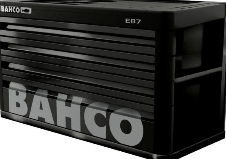 Bahco 1487K4BLACK on musta työkalulaatikosto, jossa kulmasuojukset ja 4 laatikkoa. DAAT-järjestelmän ansiosta vain yksi vetolaatikko voi aueta kerrallaan.