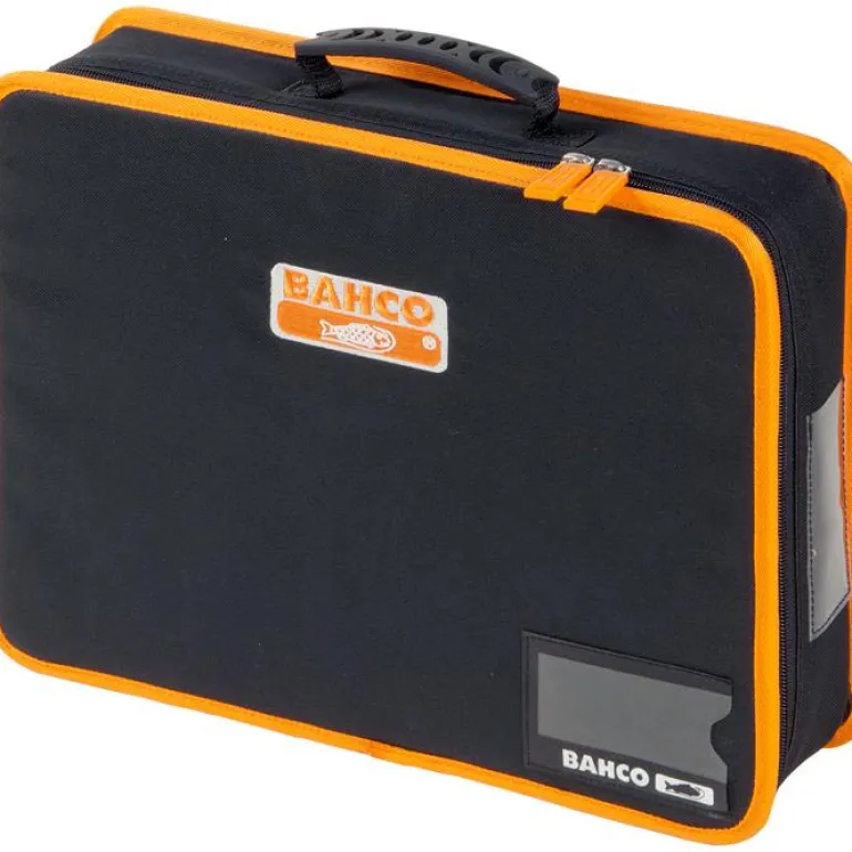 Kätevä työkalulaukku, jossa on useita lokeroita, korttitasku, asiakirjapidike ja kahva. Mitat: 400x90x300 mm.