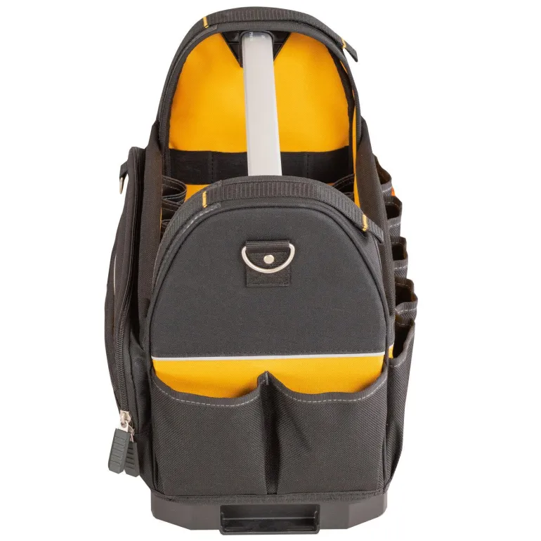 Pehmeä ja avoin työkalulaukku, TSTAK, ruiskuvalettu muovipohja, joka suojaa märältä lattialta tai maalta. Valmistettu vahvasta ja kestävästä polyesterikankaasta.