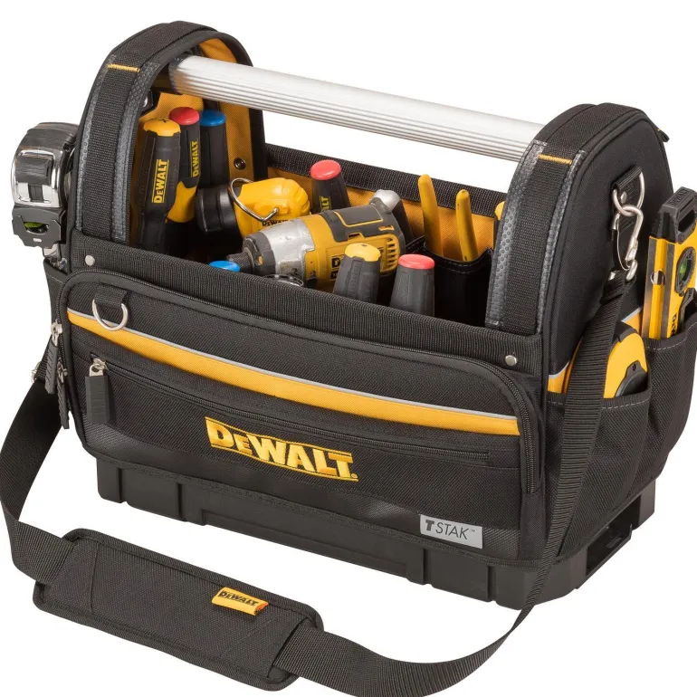 Pehmeä ja avoin työkalulaukku, TSTAK, ruiskuvalettu muovipohja, joka suojaa märältä lattialta tai maalta. Valmistettu vahvasta ja kestävästä polyesterikankaasta. Alumiininen kahva helpottaa kuljetusta ja tekee tuotteesta pitkäikäisen. Teräsvahvisteiset niitit lisäävät lujuutta. Kuormituskapasiteetti 30 kg. Yhteensopiva muiden TSTAK-moduulien kanssa.