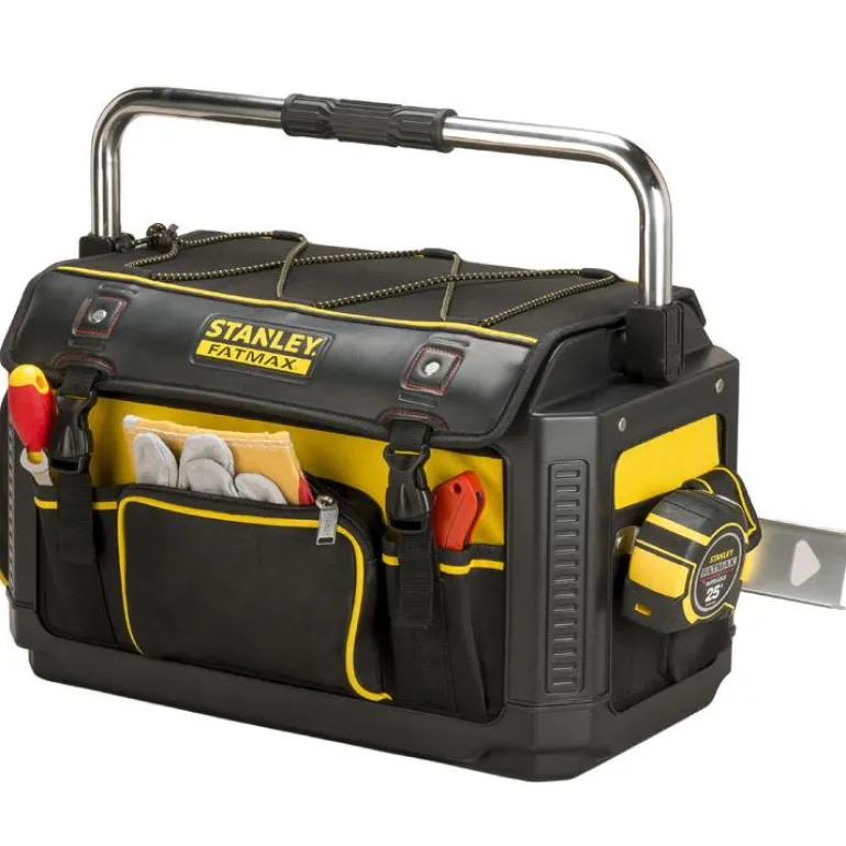 STANLEY 1-79-213 on 20″:n työkalulaukku, joka on valmistettu kestävästä 600 x 600 D:n ballistisesta nylonkankaasta. Kestävä ja tukeva. Kannen ansiosta tuotteessa yhdistyvät laukun ja työkalulaatikon hyvät puolet. Työkalulaukku suojaa myös tehokkaasti sähkö- ja muita työkaluja. Vahva muotoiltu polypropyleenirunko korostaa laukun tukevaa muotoilua. Tukevat sisätaskut sähkötyökaluille ja DeWALT-akuille. Useita sisä- ja ulkotaskuja, joiden ansiosta työkalut pysyvät hyvässä järjestyksessä.