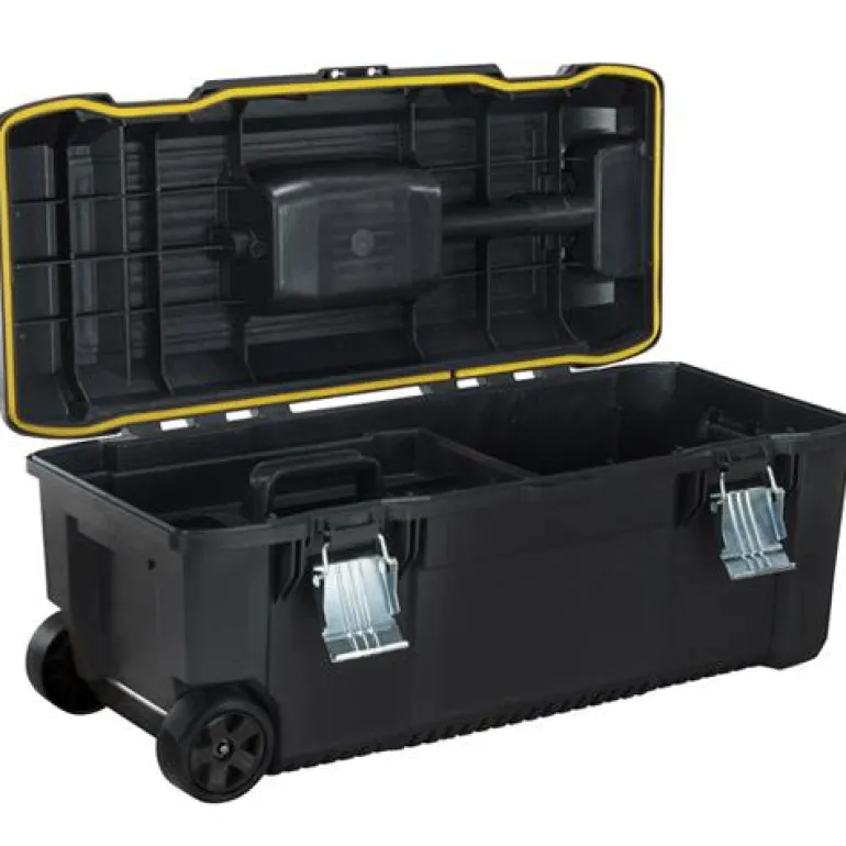 28″:n työkalulaukku raskaidenkin varusteiden vaivattomaan kuljetukseen. Upotetut ergonomiset kahvat, metallinen teleskooppikahva ja pyörät. Sisältää irrotettavan kaukalon. Leveä metallikahva mahdollistaa vaivattoman ohjauksen. Vesitiivis laukku suojaa työkaluja luotettavasti. Laukussa on kiinnike riippulukolle sekä tukevat, ruostumattomat metallikiinnikkeet. Kannen V-ura helpottaa puun ja putkien käsittelyä.