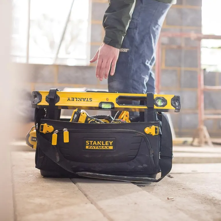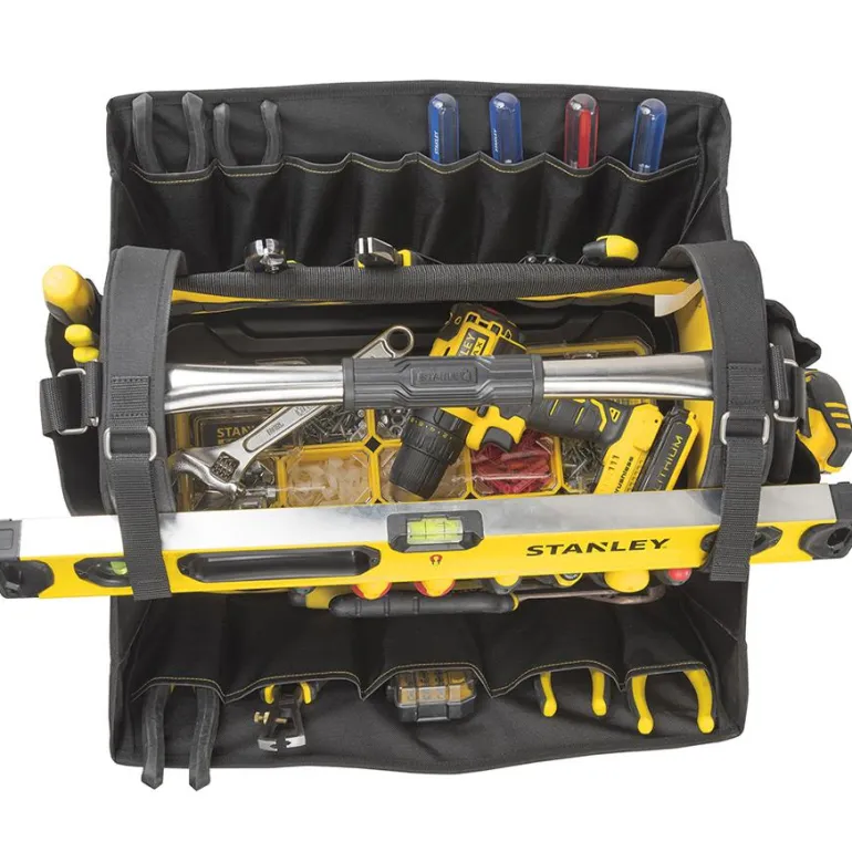 Pehmeä työkalulaukku on tilava ja rakenteeltaan avoin, joten työkalut ovat nopeasti ja helposti saatavilla. Tilaa pitkille ja suurikokoisille työkaluille, lajittelulaatikot jne. Pehmustettu olkahihna takaa parhaan mukavuuden raskaita taakkoja kannettaessa. Erillinen lokero henkilökohtaisille tavaroille, kuten avaimille, lompakolle ja matkapuhelimelle.