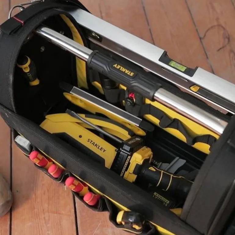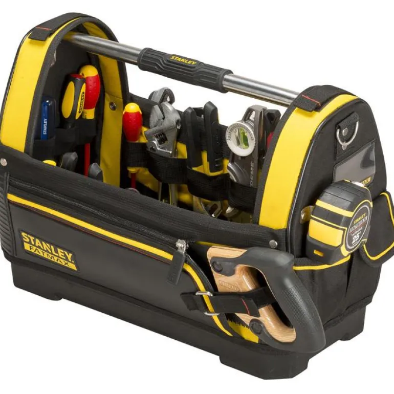 Stanley Black & Decker 1-93-951 FatMax on työkalulaukku, jossa monia lokeroita kaikkiin säilytystarpeisiin sekä helppokäyttöiset taskut.
