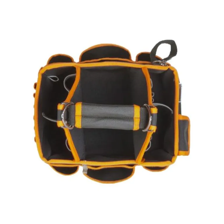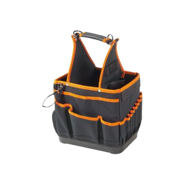 Käytännöllinen työkalulaukku, jossa on sisä- ja ulkolokerot, kahva sekä olkahihna. Mitat: 285x290x285 mm.