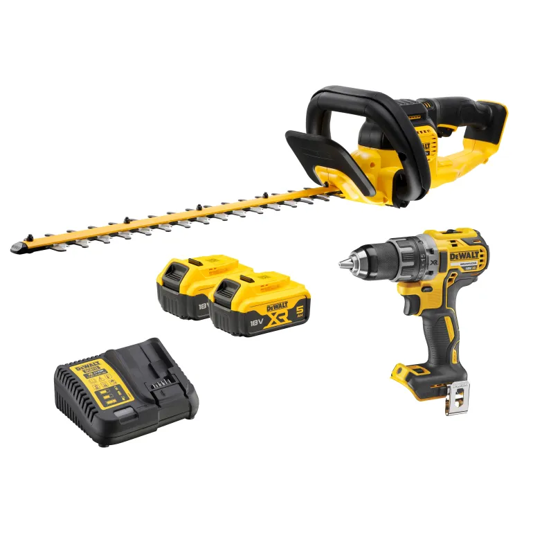 18 V:n XR-kaksoispaketti ulkokäyttöön pahvikotelossa. Sisältää: DCMHT563, 25 mm:n pensasleikkuri. DCD791, 18 V:n hiiliharjaton porakoneruuvinväännin. 2 x DCB184, 18 V 5 Ah akku. DCB115, 4 A:n laturi. Pakattu pahvikoteloon.