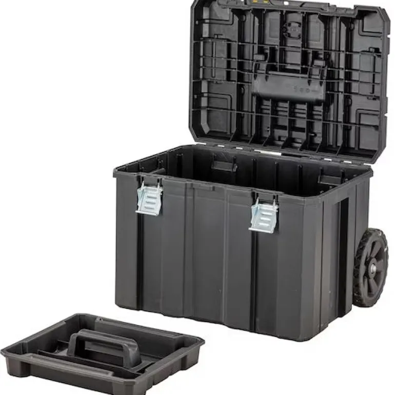 TSTAK® 3-in-1 -työkalupakki/työkalulaatikko 7″ pyörillä, joka tarjoaa mahdollisuuden kuljettaa raskaita työkaluja helpommin pidempiäkin matkoja. Teleskooppikahva helpottaa käsittelyä ja kuljettamista. Kahva voidaan myös taittaa sisään työkalulaatikkoon säilytyksen helpottamiseksi. Avoin säilytyslaatikko – nopea ja helppo pääsy työkaluihin ja lisävarusteisiin. Pitkä alumiininen kahva, joka takaa kestävyyden. Lokerikko (ei IP-luokiteltu) lisävarusteiden ja komponenttien helppoon säilytykseen. DEWALT TRACKER – kiinnityspiste sisäänrakennettu TSTAK-laatikoihin DEWALT Trackerin asentamiseen, mikä mahdollistaa seuraamisen DEWALT Tool Connectin avulla. Kestävät metalliset salvat vakautta ja kestävyyttä varten. Metalliset sivusalvat mahdollistavat TSTAK-moduulien liittämisen yhteen. IP54-luokitus: suojaa työkaluja vedeltä ja pölyltä. Kapasiteetti pyörällinen työkalupakki DWST83347-1 50 kg/36 l, keskimmäinen lokerikko/työkalulaatikko DWST82968-1 20 kg/7,8 l ja ylimmäinen työkalupakki DWST83344-1 30 kg/11 l. Lukittava riippulukolla (ei sisälly toimitukseen) lisäsuojaksi (lukuun ottamatta lokerikko). 3 osaa. Kaikki osat IP54.