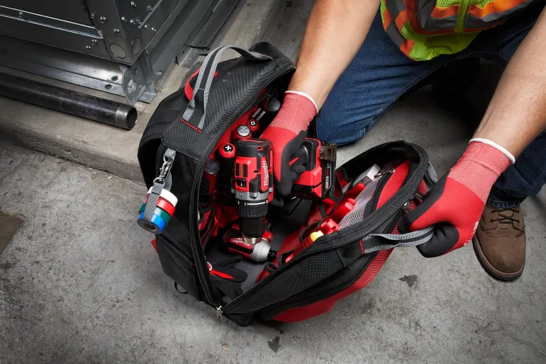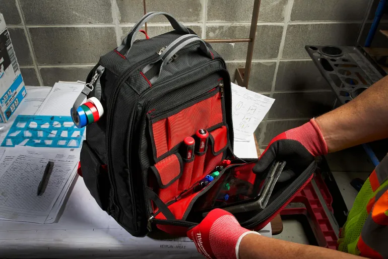 Milwaukee 4932471131 on työkalureppu kestävästä 1680D-materiaalista. Iskunkestävä polymeeripohja suojaa sisältöä vedeltä ja lialta sekä mahdollistaa repun säilyttämisen pystyasennossa. Yhteensä 48 taskua.