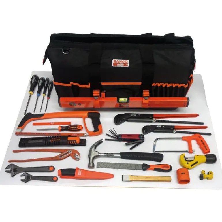 Bahco BASEPACK-PLUM on 24-osainen työkalusarja putkitöihin. Sarja sisältää mm. putkipihtejä, jakoavaimia, talttoja, kuusiokoloavaimia, veitsiä ja viiloja. Mukana kannellinen työkalulaukku.