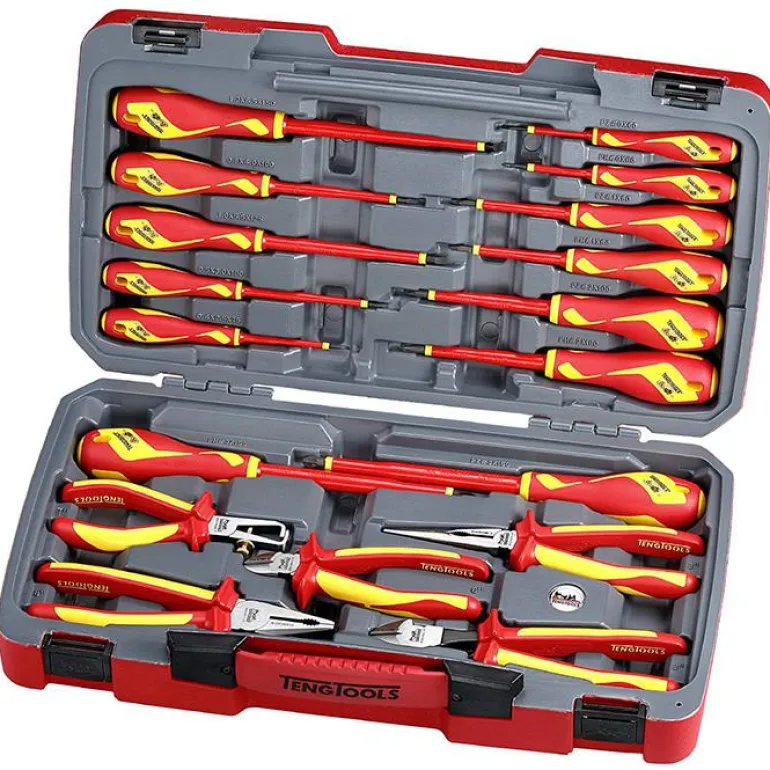 Teng Tools TV18N on työkalusarja sisältää 13 ruuvitalttaa ja 5 pihdit, jotka on valmistettu IEC 60900 -standardin mukaisesti enintään 1000 voltin jännitteellä työskentelyyn. Toimitetaan punaisessa muovilaatikossa, jossa metallinen turvalukko, taittuva kahva ja saranoissa metalllitapit.