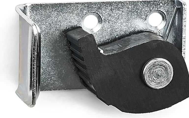 Galvanoitu teräs, jousilevy mustaa kumia. Tukilevy 60×34 mm.
