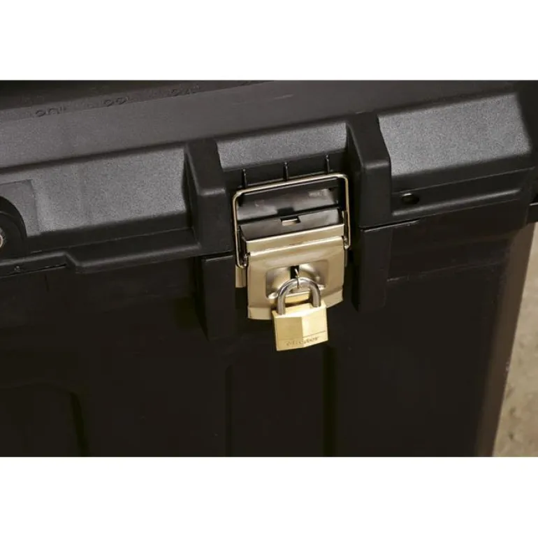 Suuritilavuuksinen työkaluvaunu (190 l). Ylimmässä kannessa siipiruuvit vesivaa’an, sahan ja muiden varusteiden kiinnittämiseen. Erittäin isot ja ruostumattomat metallikiinnikkeet sekä kestävä lukitussilmukka lisäävät turvallisuutta. Maksimaalisesti säilytystilaa ja isojen työkalujen sekä työpajamateriaalien vaivaton kuljetus.