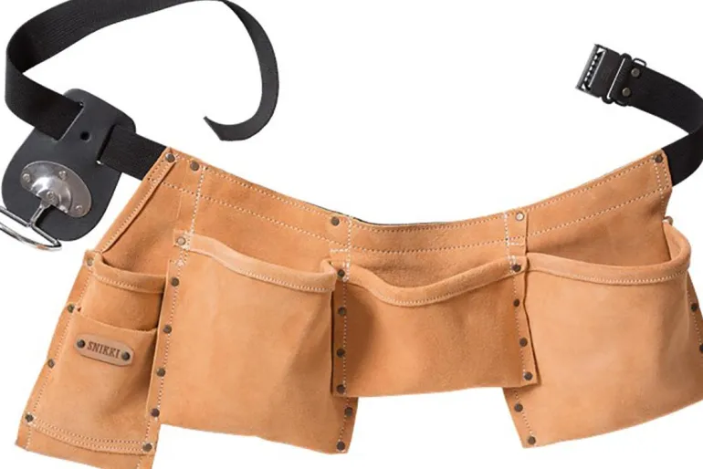 Työkaluvyö puusepille, kirvesmiehille, asentajille jne. Vyössä on 40 mm leveä metallisoljella varustettu nailonhihna, kolme vapaasti riippuvaa naula- ja ruuvitaskua, vasaranpidike, kynätasku ja taittomittatasku.
