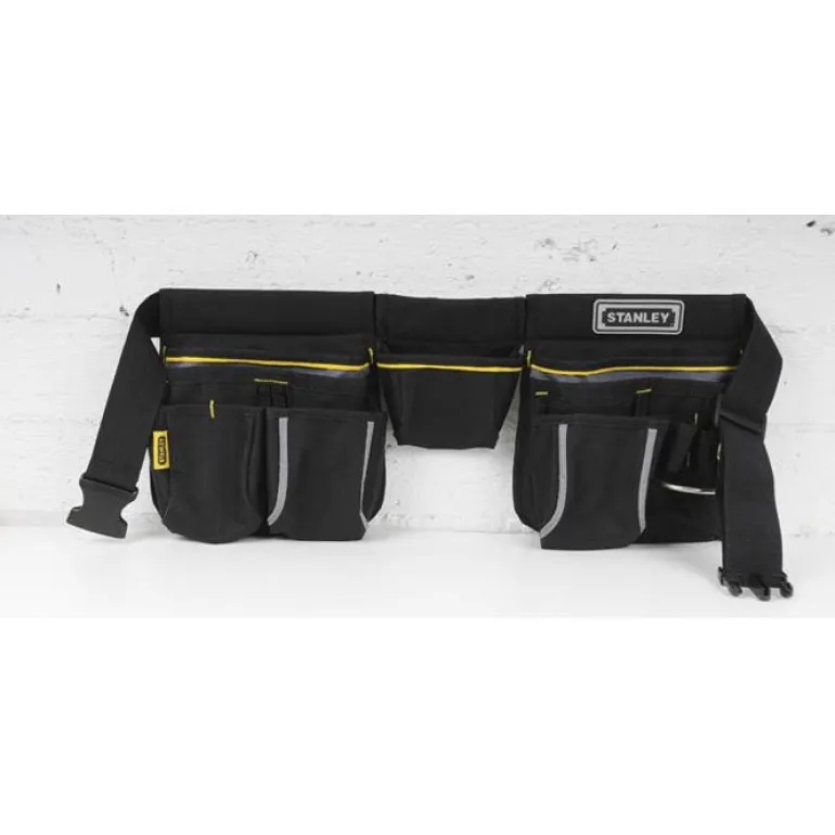 Kaksoistaskullinen työkaluvyö. 600 x 600 denierin kankaasta valmistettu – kestävä ja tukeva. Pidä työkalut lähellä työn aikana. Ergonominen pehmuste selässä parantaa turvallisuutta ja mukavuutta. Kiinteä metallisilmukka vasaralle. Erikokoisia taskuja ja silmukoita parantamaan järjestystä. Taskujen koko ja rakenne tekevät niistä erittäin helppokäyttöiset. Mittanauhatasku helpottaa mittaamista.