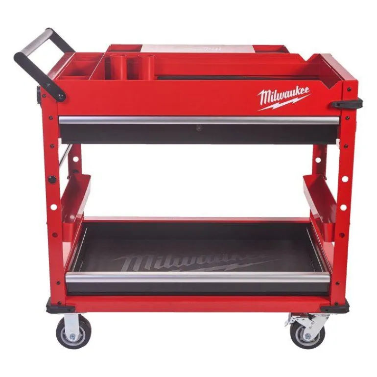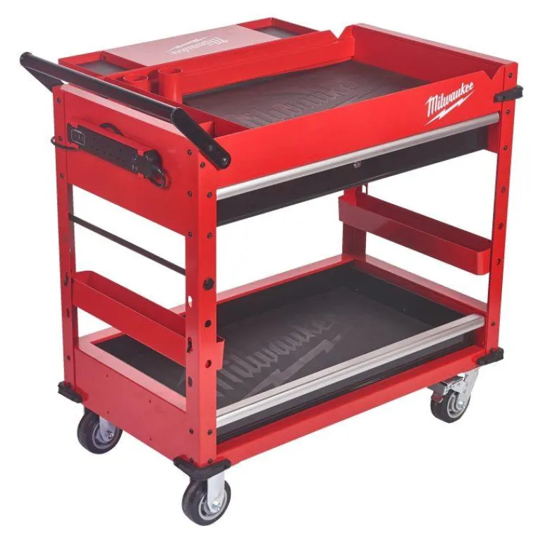 Työkärry on varustettu 45 kg-luokitelluilla pehmeästi sulkeutuvilla laatikoilla, yhdellä 90 kg-luokitellulla ulostyönnettävällä pohjahyllyllä sekä yhdellä takapuolella sijaistsevalla ulostaitettavalla hyllyllä, jonka painokapasiteetti on 22 kg. On myös kaksi poisotettavaa säilytyslokeroa, joita voidaan kääntää ylös ja alas tasaista työpintaa ajatellen tai ottaa pois kokonaan pitkien työkalujen pystysuoran säilyttämisen takia. Tuotteeseen kuuluu myös sisäänrakennetut säilytyslokerot sekä kaksi siirrettävää hyllyä pullojen, spraypurkkien ja muiden tarvikkeiden säilytystä varten.