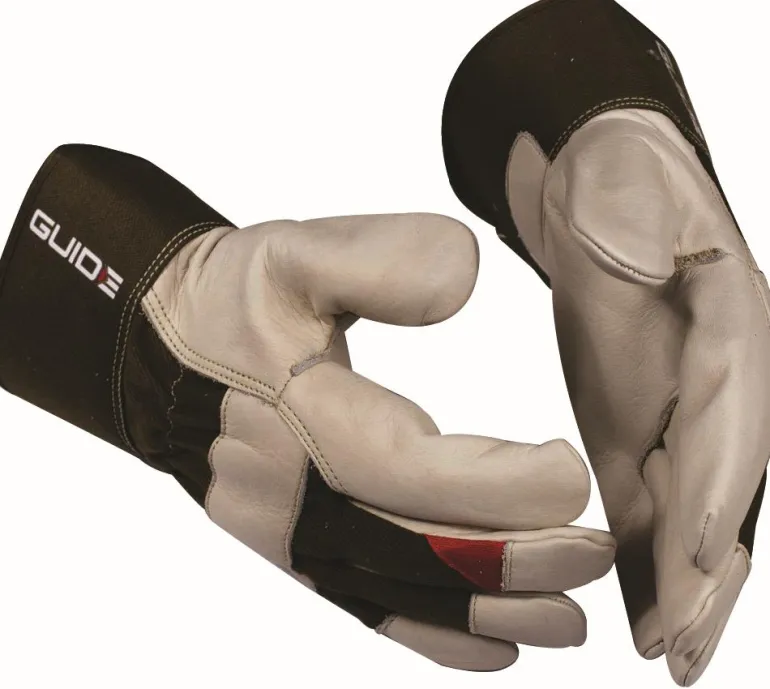 Guide Gloves 195 on vahva, puolivuorillinen työkäsine pehmeää, kulutusta kestävää naudannappaa. Käsineessä on turvaranneke, puuvillavuori kämmenessä ja vahvikkeet sormissa ja rystysissä.