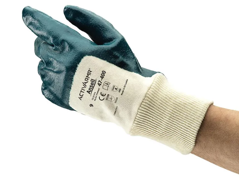Ansell HyLite 47-400 on nitriilikumista ja puuvillasta valmistettu koon 9 työkäsine, jonka pituus on 270 mm. Hylite-käsineissä on käyttömukavuutta lisäävä interlock-neulevuori ja hyvä istuvuus. Siksi ne tuntuvat mukavilta myös pidemmässä käytössä. Käsine on silikoniton ja takaa puhtauden käsiteltäessä metallilevyjä, mikä on tärkeää teräs- ja moottoriteollisuudessa. Erityinen nitriilikoostumus tarjoaa erinomaisen yhdistelmän joustavuutta, mekaanista kestävyyttä ja öljynhylkivyyttä. Ansell HyLite 47-400 on hyväksytty elintarvikekäyttöön, ja sitä suositellaan käytettäväksi muun muassa metallilevyjen ja -paneelien käsittelyssä tai lasin, lasilevyjen ja lasipaneelien leikkaamisessa.