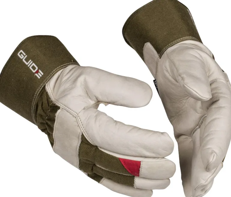 Guide Gloves 196W on vahva, täysvuorillinen talvikäsine, jonka kämmen pehmeää, kulutusta kestävää naudannappaa ja kämmenselkä puuvillaa. Käsineessä on suojaranneke ja vahvikkeet sormissa ja rystysissä.