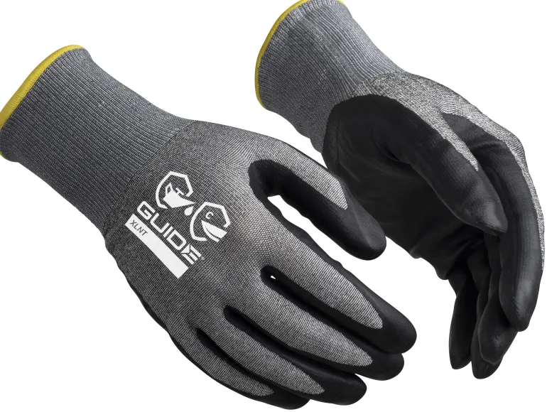 Guide Gloves 9505 on työkäsine Guide XLNT™ -nitriilipinnoitteella, jossa yhdistyvät hyvä suoja öljyä vastaan ja erinomainen otepito. Yksinkertainen pinnoite kämmenessä ja hengittävä kämmenselkä. Viiltosuojaustaso C. Elintarvikehyväksytty, hyväksytty kosketuslämpötasolle 1. Öko-Tex-hyväksytty. Soveltuu kosketusnäyttöjen käyttämiseen.