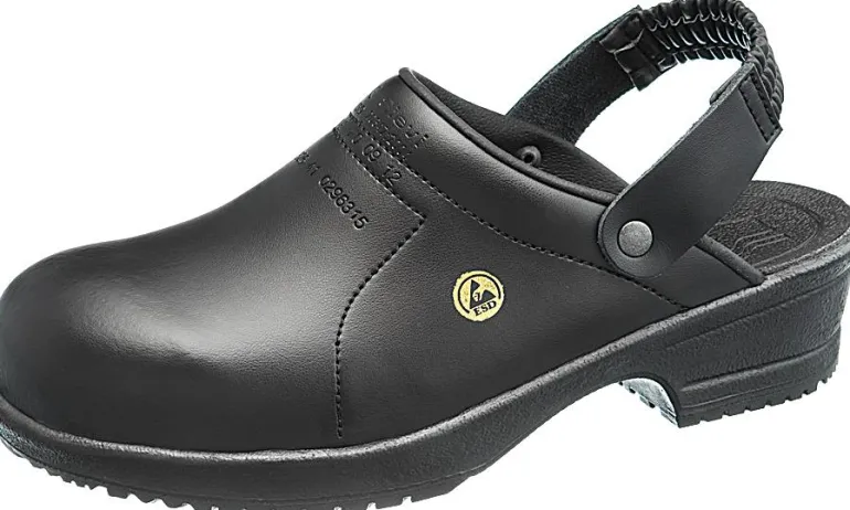 Puukengän mallinen työkenkä, klassinen ja monipuolinen ESD-malli. Päälliosa on kestävää mustaa PU-nahkaa.